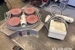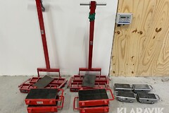 Parti med domkraft, pallbockar och dammsugare