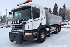 Tippbil Scania P380 6x2 med plo­gutrust­ning
